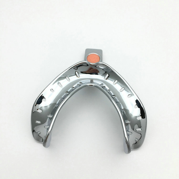Crafted from high-grade metal alloys and finished with medical-grade chrome plating, these U-shaped trays are designed to securely hold impression materials while ensuring patient comfort. The evenly spaced perforations along the edges allow excess material to escape, creating a precise mold of the lower dental arch.